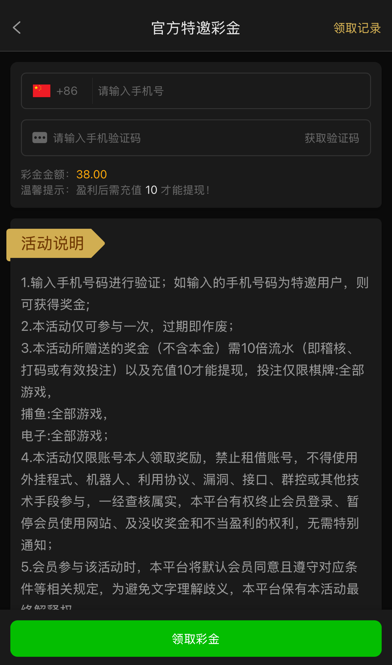 新用户注册绑卡点击优惠大厅里面的电话特邀自助验证手机号是特邀秒送38