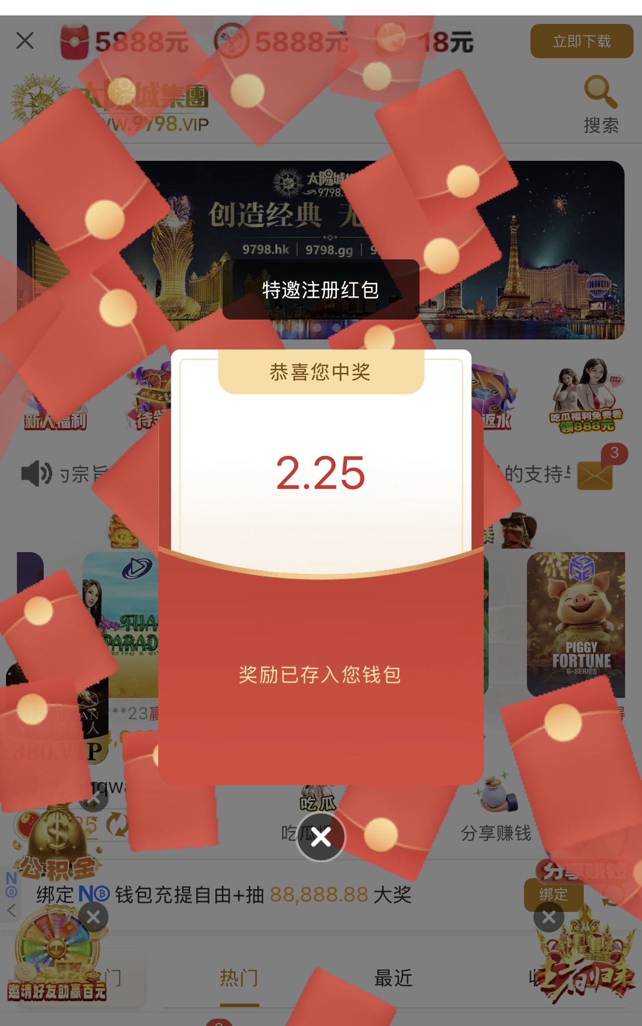 新用户注册直接弹窗红包彩金